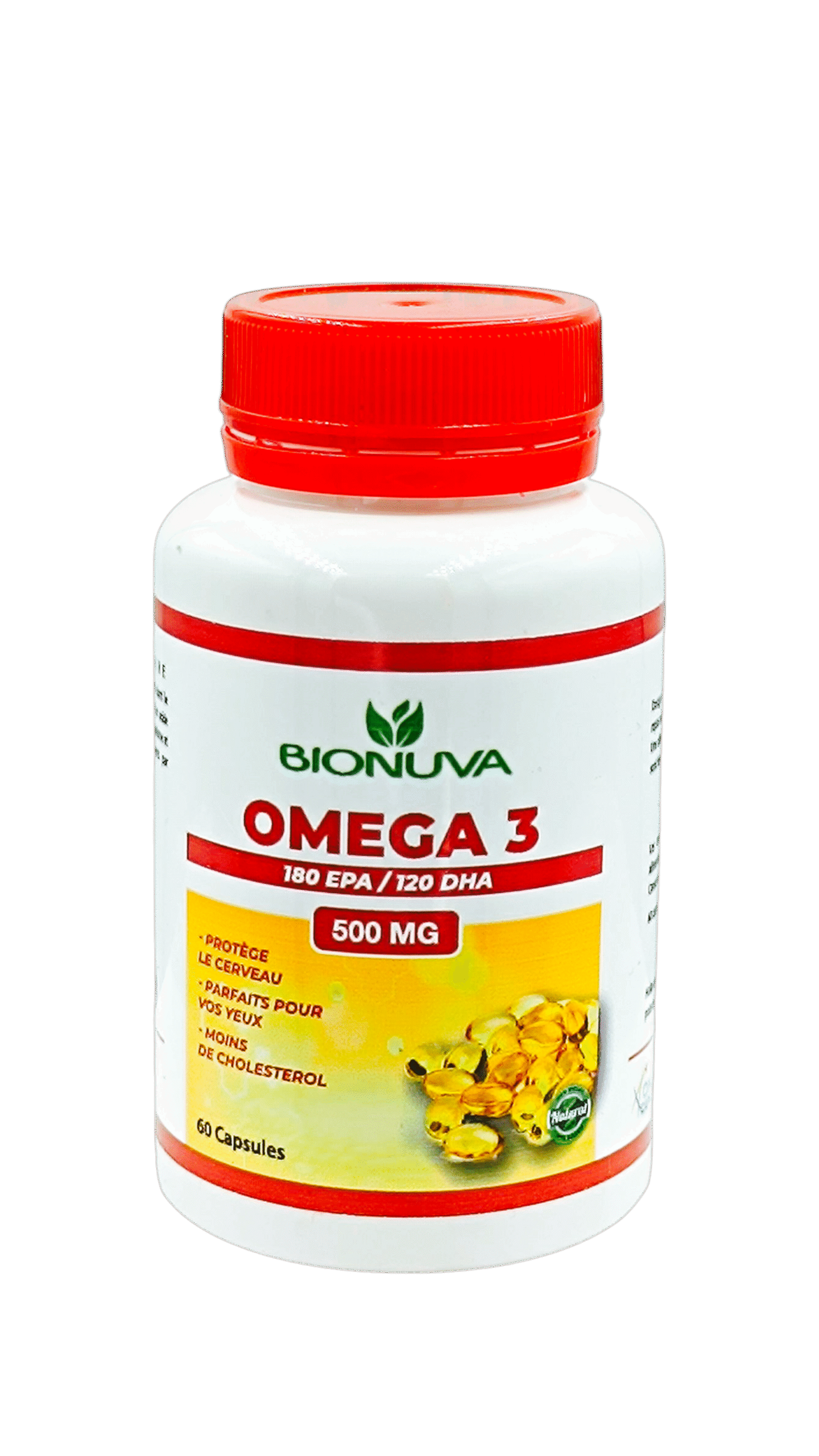 BIONUVA Omega 3 – 500 mg – 60 capsules est un complément alimentaire fournissant des acides gras essentiels Oméga-3 (EPA et DHA), extraits généralement d’huile de poisson.