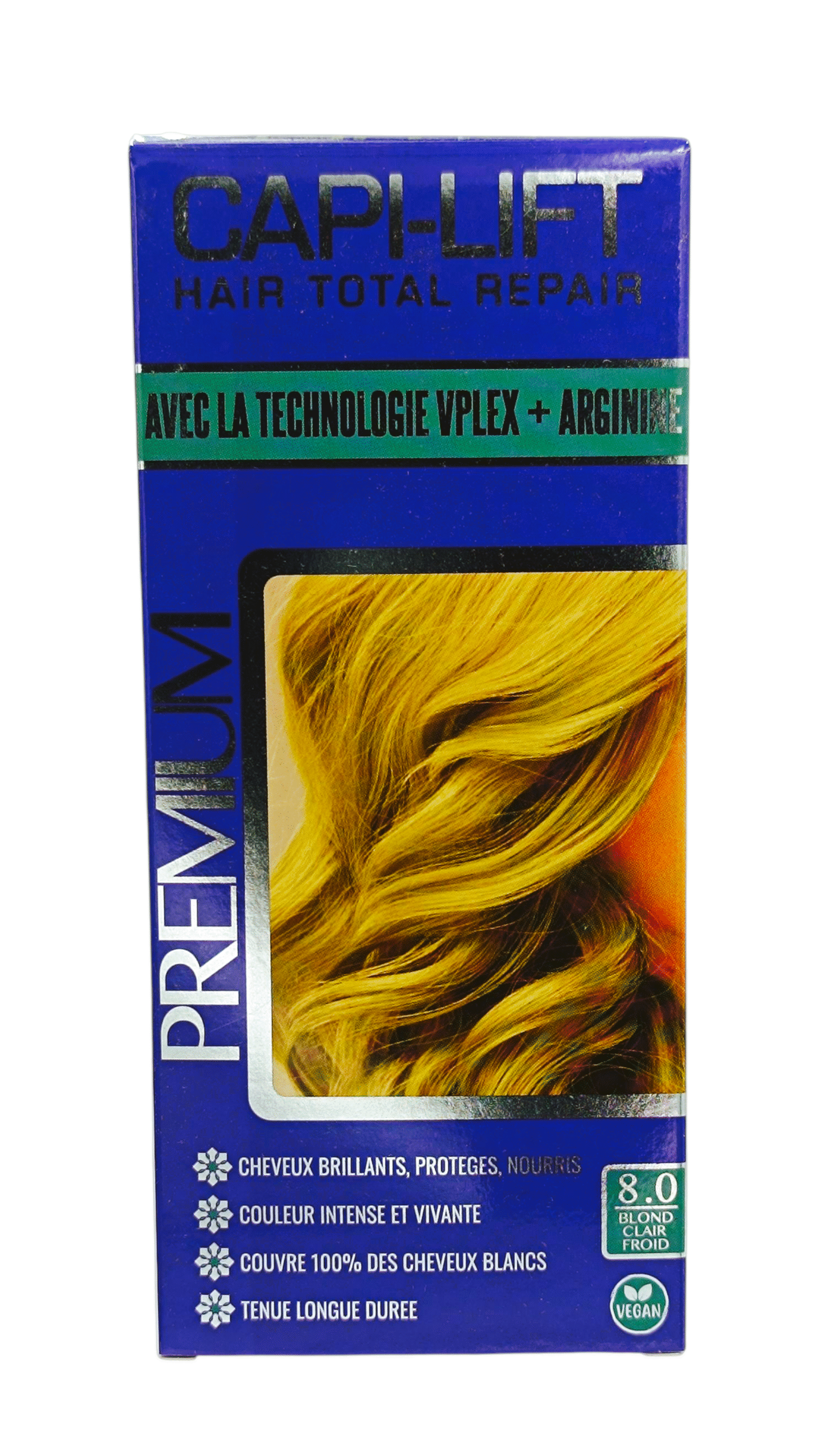 La Capi-Lift Coloration N°8 Blond Clair Froid est une teinture capillaire spécialement formulée pour offrir une couleur blonde claire avec des tons froids, idéale pour ceux qui recherchent un blond clair lumineux et naturel, sans les reflets jaunes ou orangés typiques des teintes plus chaudes. Voici une description détaillée du produit :