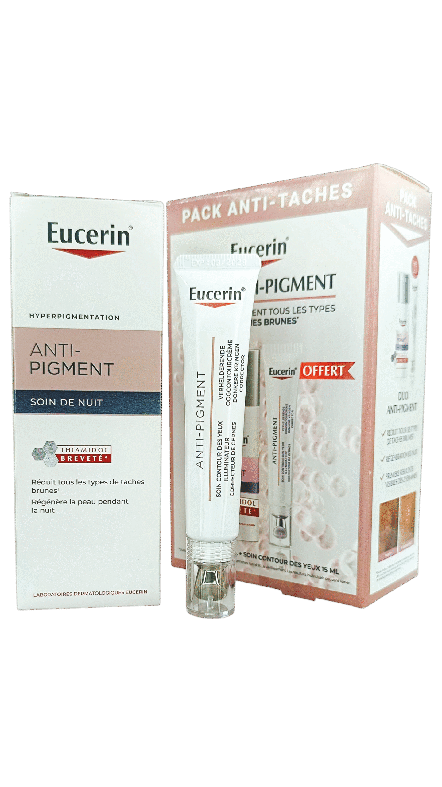 Le soin de nuit anti-pigment Eucerin 50ml est un traitement ciblé conçu pour réduire visiblement les taches pigmentaires et unifier le teint pendant la nuit. Sa formule agit en douceur pour inhiber la production excessive de mélanine et favoriser le renouvellement cellulaire, aidant ainsi à atténuer les hyperpigmentations et à éclaircir la peau. Résultat : un teint plus lumineux et homogène au réveil.