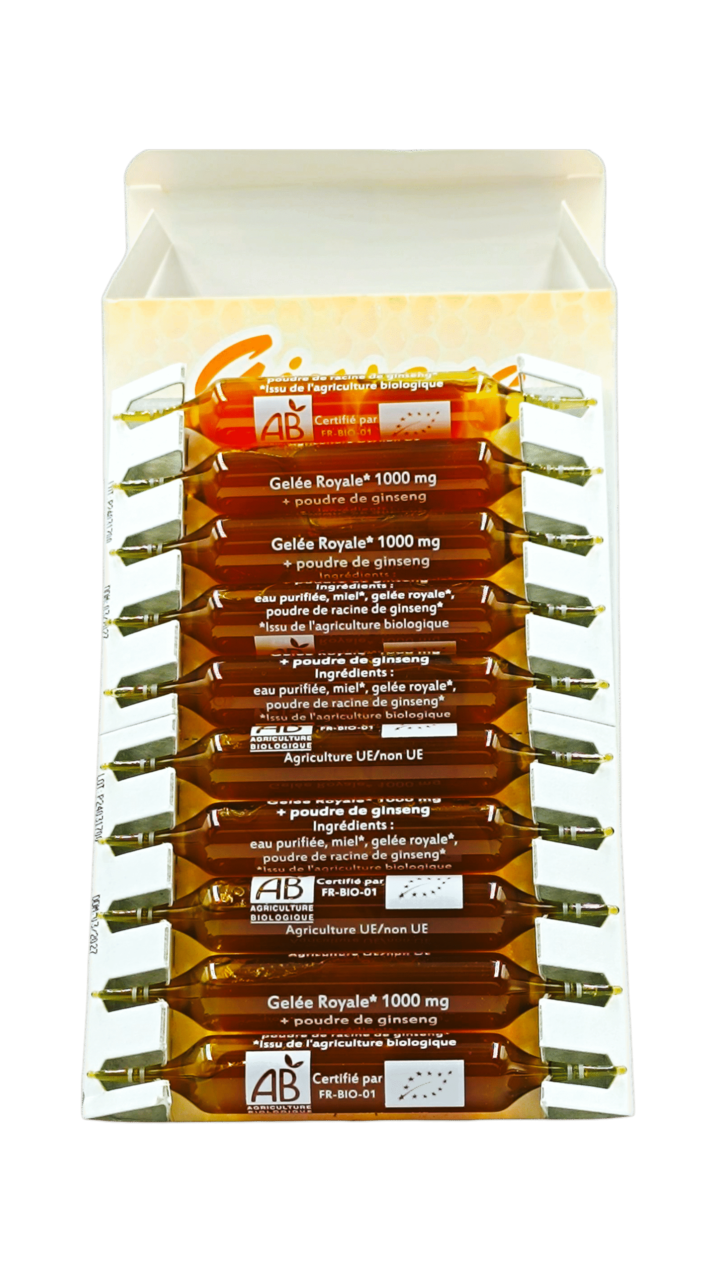 - Le flacon de 20 ampoules est conçu pour une utilisation quotidienne ou régulière, offrant une solution pratique pour profiter des bienfaits de la gelée royale et du ginseng, surtout pour les personnes ayant des horaires chargés.