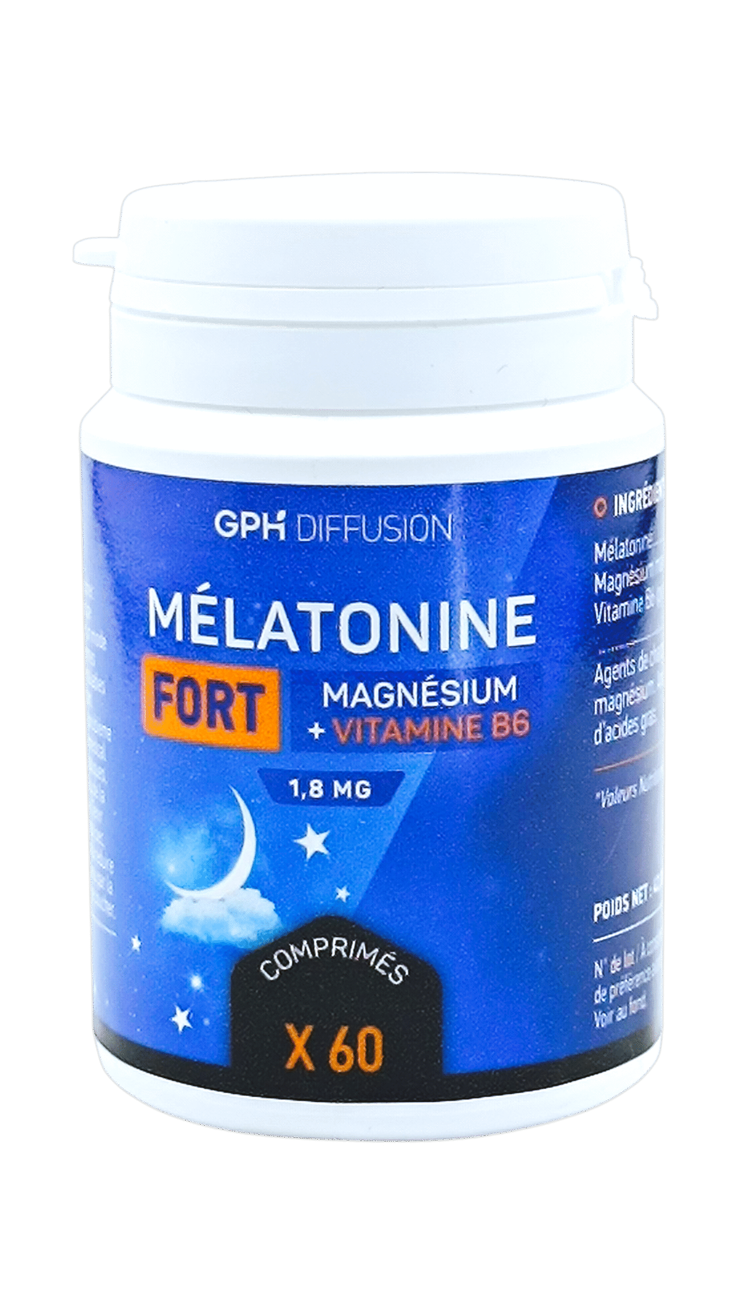 GPH Mélatonie Fort 1.8mg / 60 est un complément alimentaire à base de mélatonine, une hormone naturellement produite par le corps pour réguler le cycle du sommeil et de l’éveil. Chaque comprimé contient 1.8mg de mélatonine, et chaque flacon contient 60 comprimés. Ce complément est conçu pour aider à améliorer la qualité du sommeil et favoriser une bonne régulation du rythme circadien.