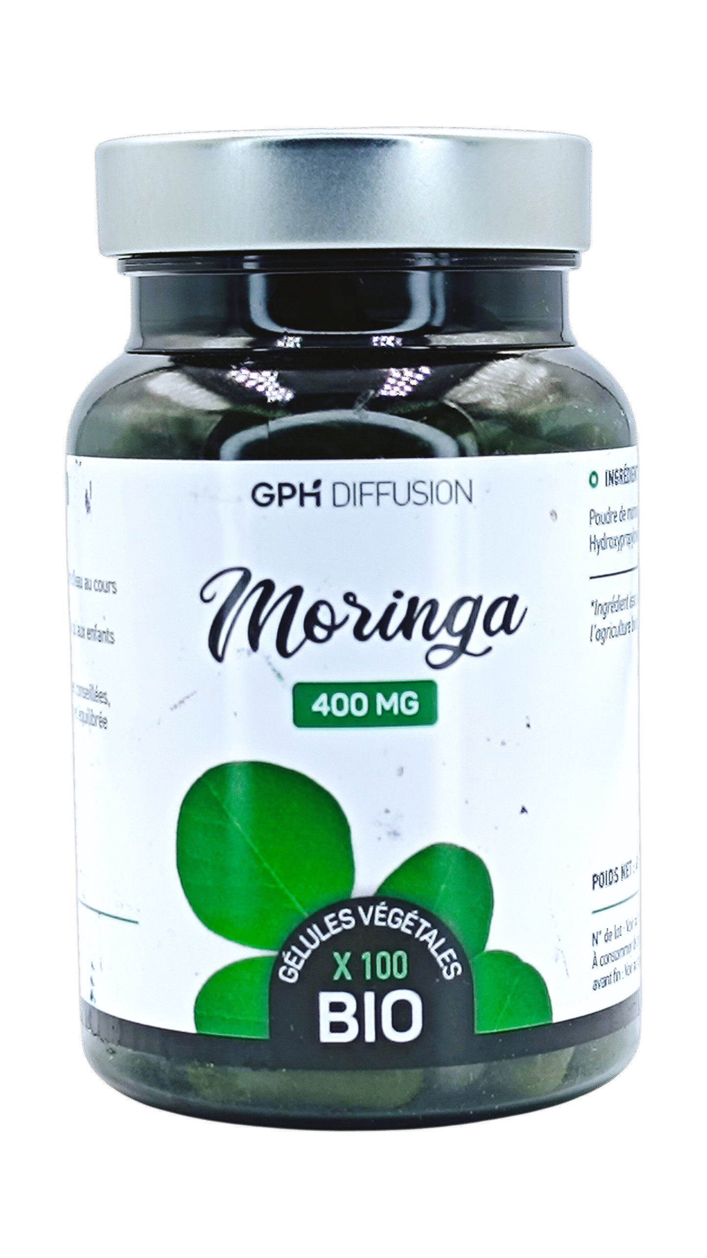 GPH Moringa 400mg CP/100 est un complément alimentaire à base de Moringa, une plante réputée pour ses nombreuses vertus nutritives et médicinales. Chaque comprimé contient 400mg de poudre de Moringa, offrant une solution pratique pour bénéficier de ses bienfaits au quotidien.
