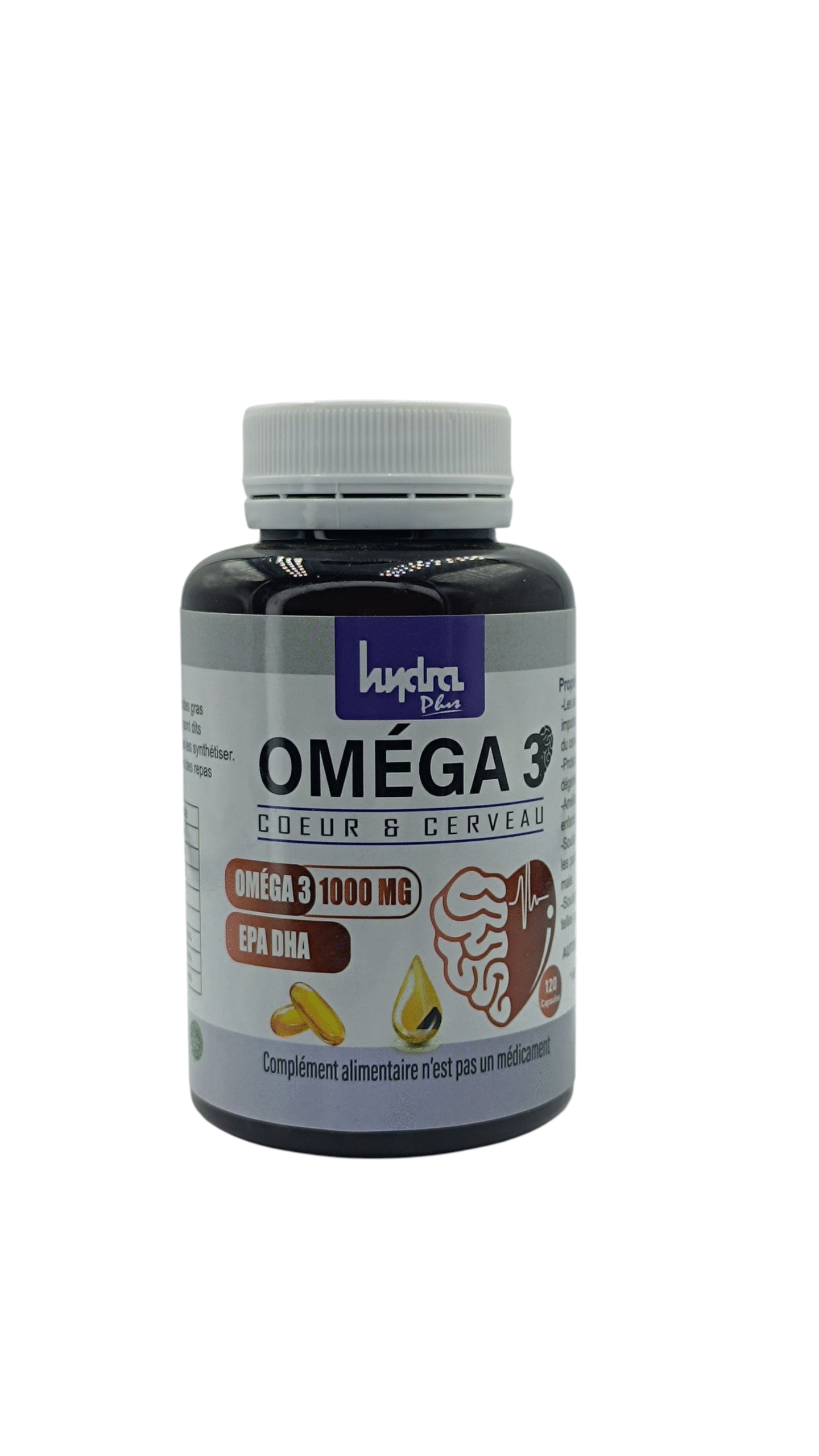 Le Hydra Omega 3 1000 mg 120 capsules est un complément alimentaire conçu pour soutenir la santé cardiovasculaire, cérébrale et articulaire grâce à sa teneur en acides gras oméga-3, notamment l’EPA et le DHA.