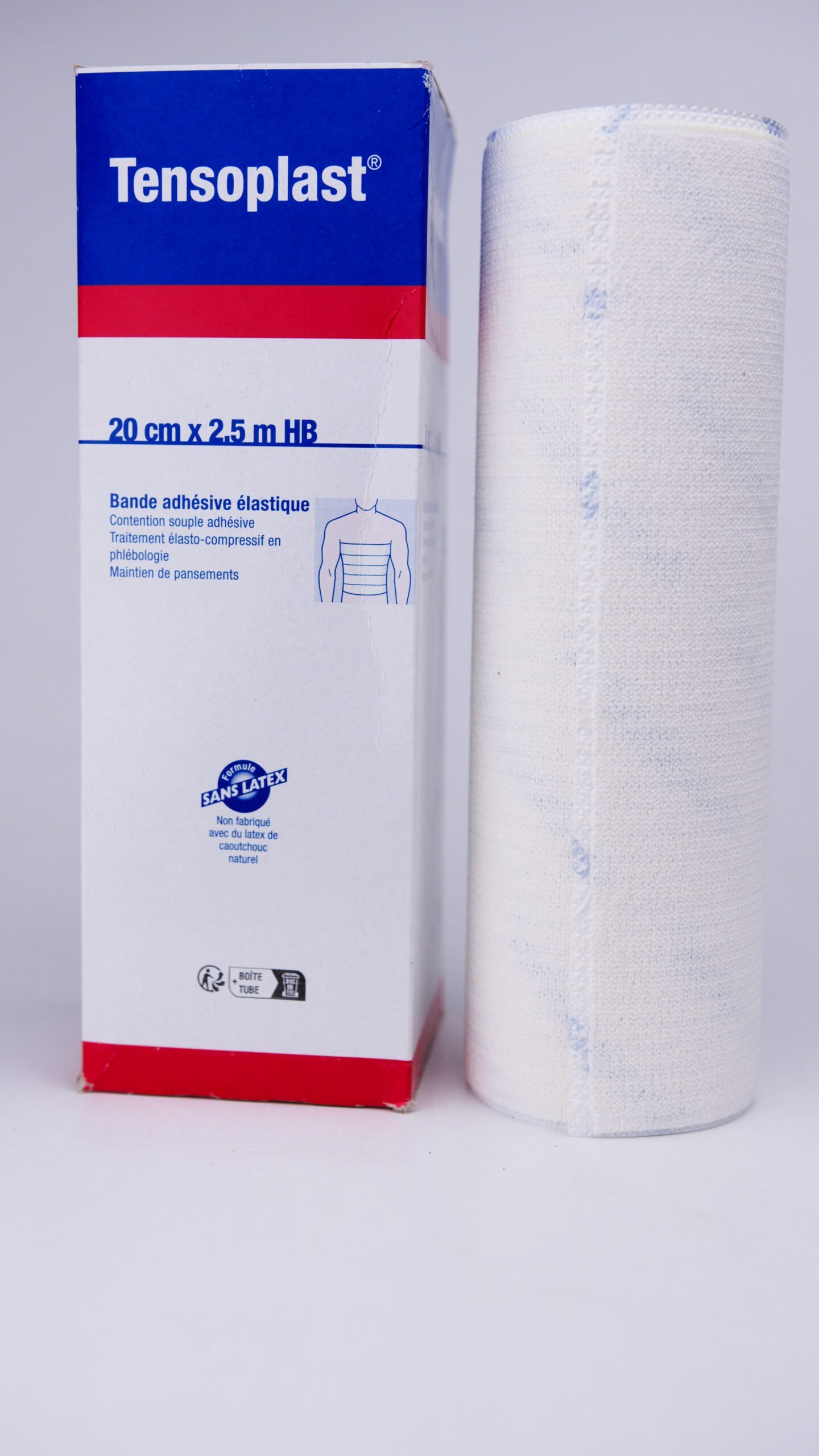 Le Tensoplast est un type de bandage élastique adhésif, souvent utilisé pour maintenir des pansements en place, soutenir les articulations ou fournir une compression thérapeutique. Ce produit est généralement utilisé dans les soins médicaux et sportifs pour aider à traiter des entorses, des blessures musculaires ou des douleurs articulaires.